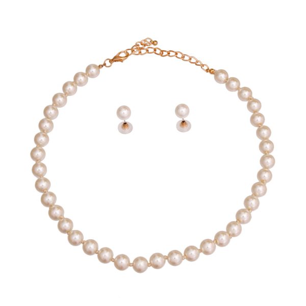 Gold and 10mm Cream Glass Pearl Single Strand Necklace Set