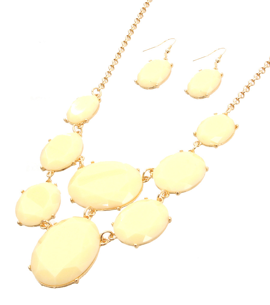 Gold metal chain necklace set with cream beads statement. Lobster clasp closure