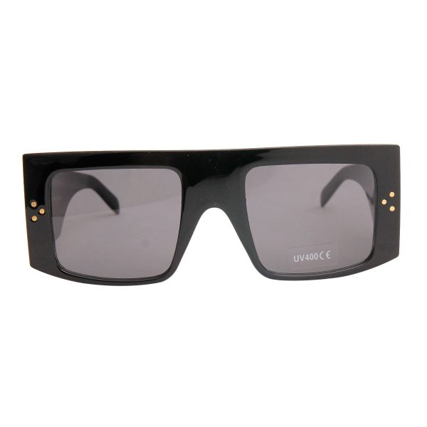 Black Plastic Square Frame Sunglasses Featuring Extra Wide Side Arm. Sunglasses measure 5.85 inches across and 2.25 inches long. UV 400 Protection. Blocks 100% UVA & UVB
