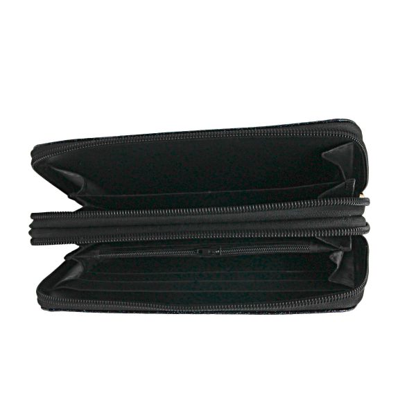 Black Glitter Vegan Leather Dual Zipper Wallet Wristlet. Divided Interior with Card Slots and Zipper Pocket