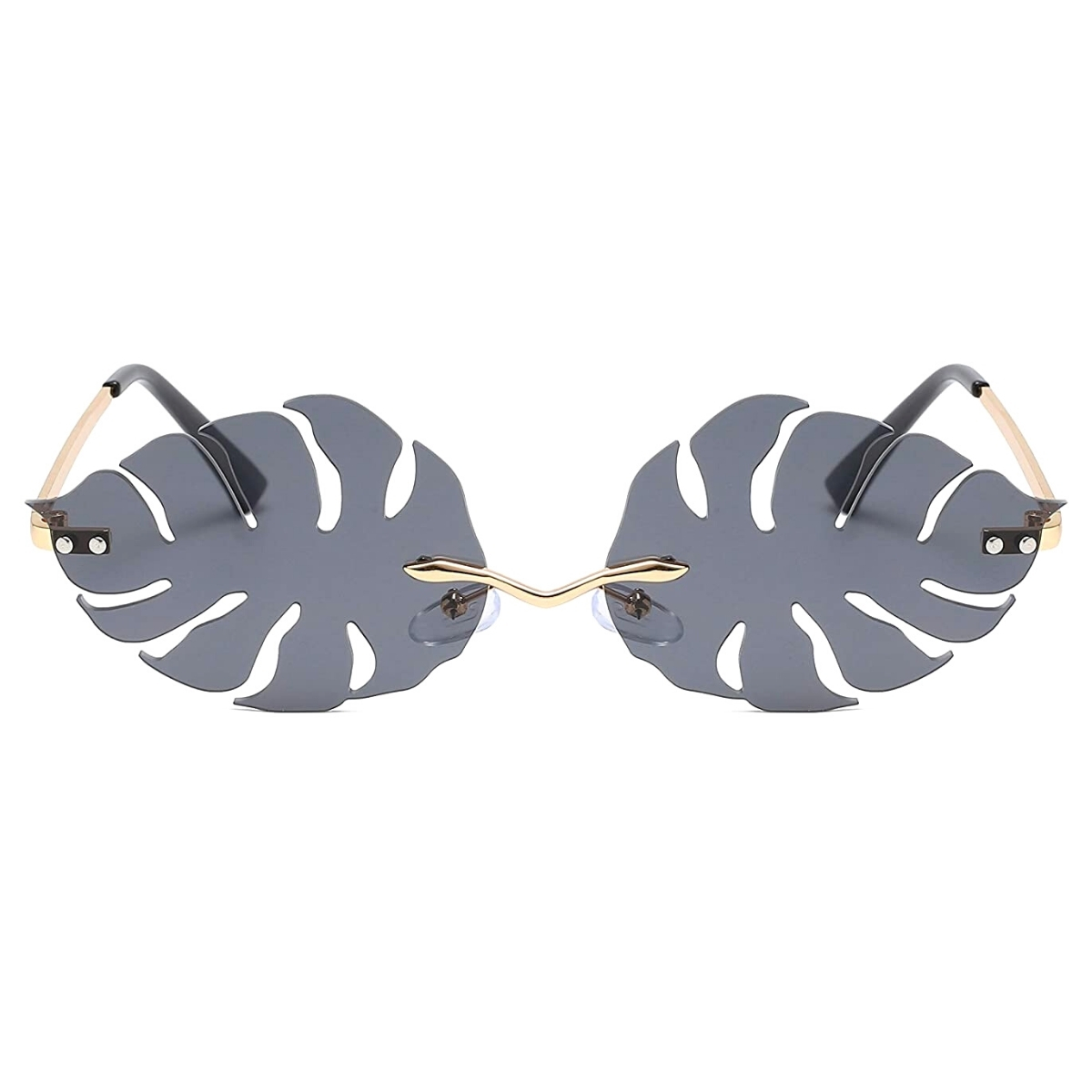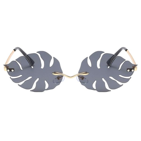 Black Tint Leaf Shape Rimless Sunglasses. Frame Material: Metal Lens Material: PC Lens Width: 60mm Bridge Width: 20mm Temple Length: 1450mm
