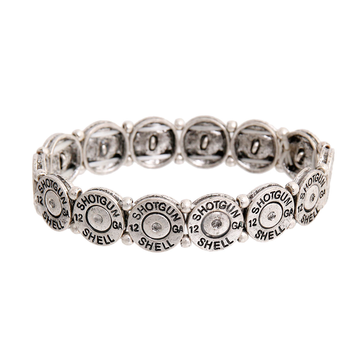 Burnished Silver 12 Gauge Shotgun Shell Western Stretch Bracelet. Bracelet measures .5 inches wide