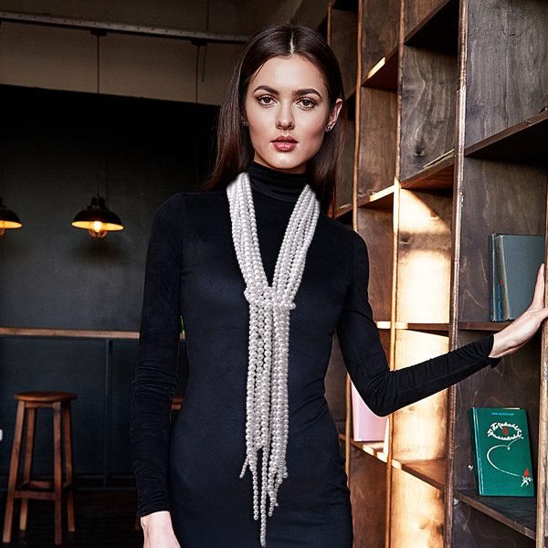 Gold and Multi Strand Cream Pearl Knot Scarf Necklace Set. Adjustable. Can be worn multiple ways. Each Side measures 24 inches long
