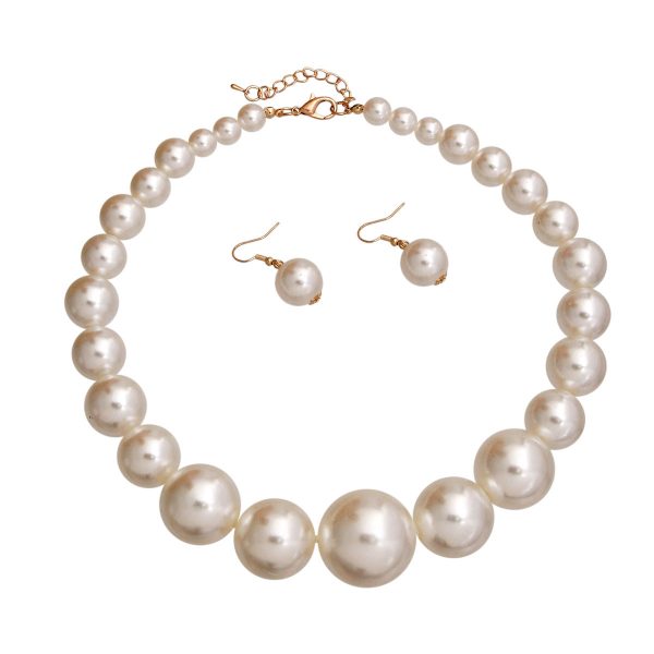 Gold and Acrylic Cream Pearl Graduated Single Strand Necklace Set