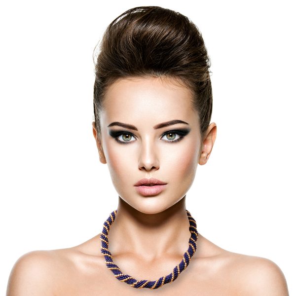 Zulu Maasai Styled Crochet Rope Necklace with Gold and Blue Beading Featuring Twisted Gold Bead Detail. Handcrafted. Fair Trade. Exclusive