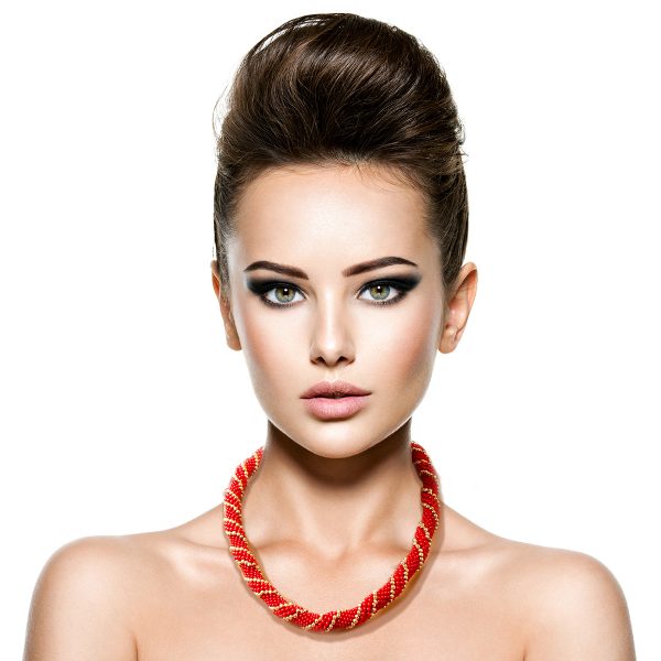 Zulu Maasai Styled Crochet Rope Necklace with Gold and Red Beading Featuring Twisted Gold Bead Detail. Handcrafted. Fair Trade. Exclusive