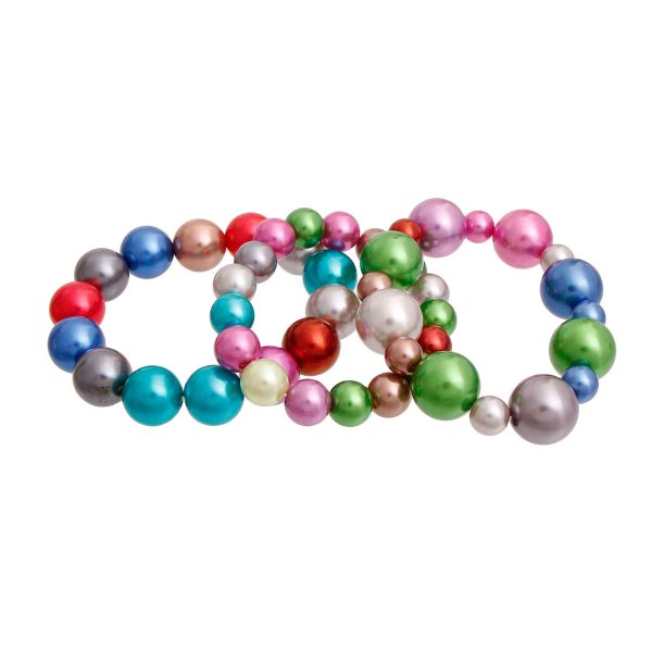 Dark Multi Color Varying Sized Pearl Stretch Bracelet Set. Includes 3 Pcs