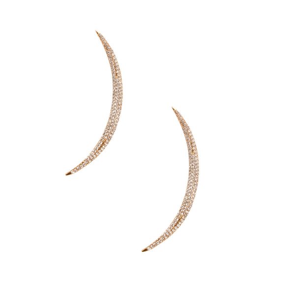 Gold Metal and Clear Rhinestone Curved Bar Crescent Drop Earrings. Earrings measure .35 inches wide