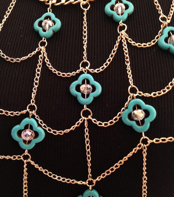 Gold and Turquoise Body Chain with Clear Beads. 24 inches long in front