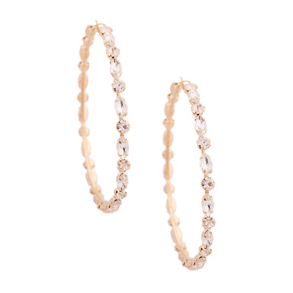 Gold Metal Hoop Earrings Featuring Clear Boat Stones and Pave Rhinestone Detailing