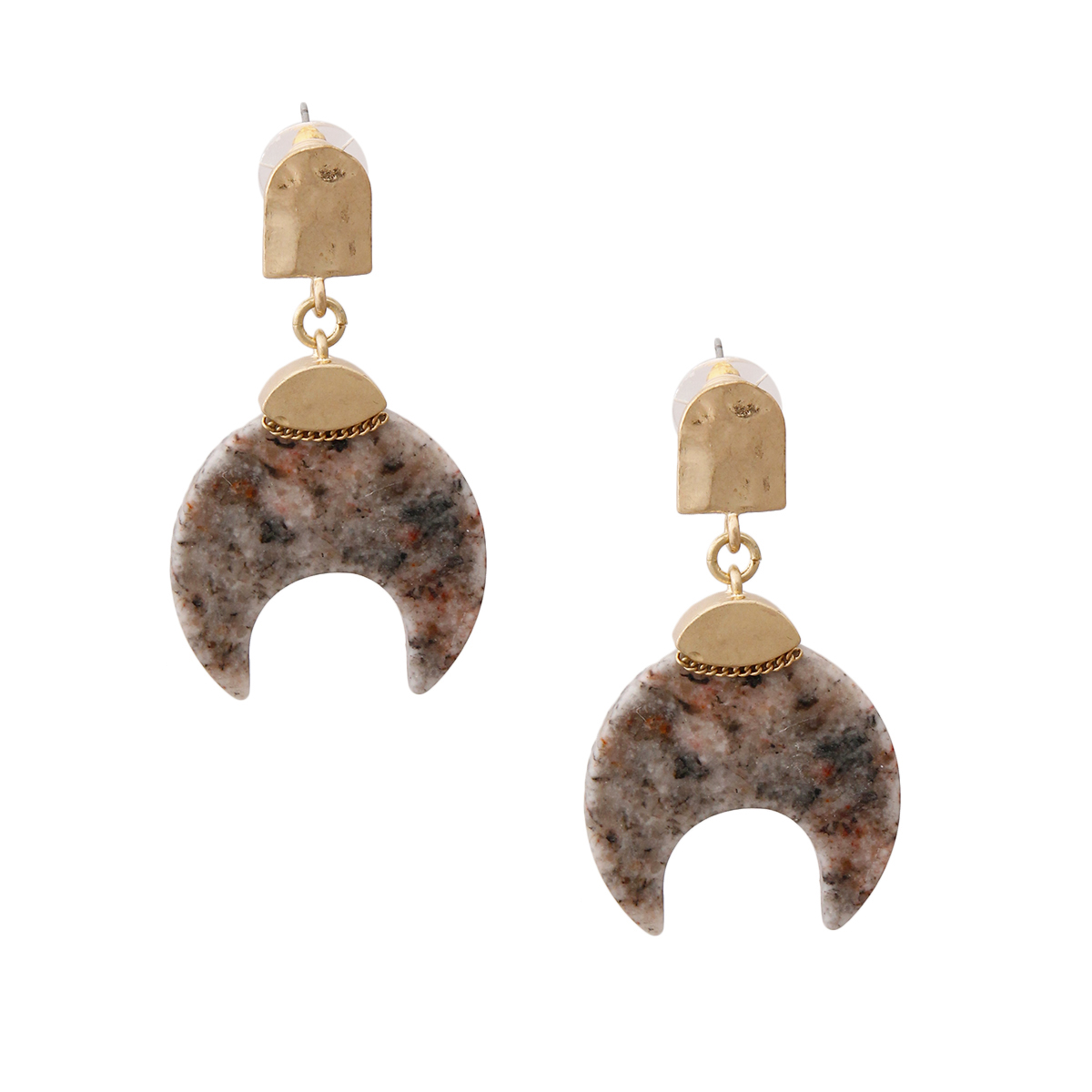 Gold Drop Earrings Featuring Natural Gray Stone Horn Shaped Detail. Horn measures 1.25 inches wide