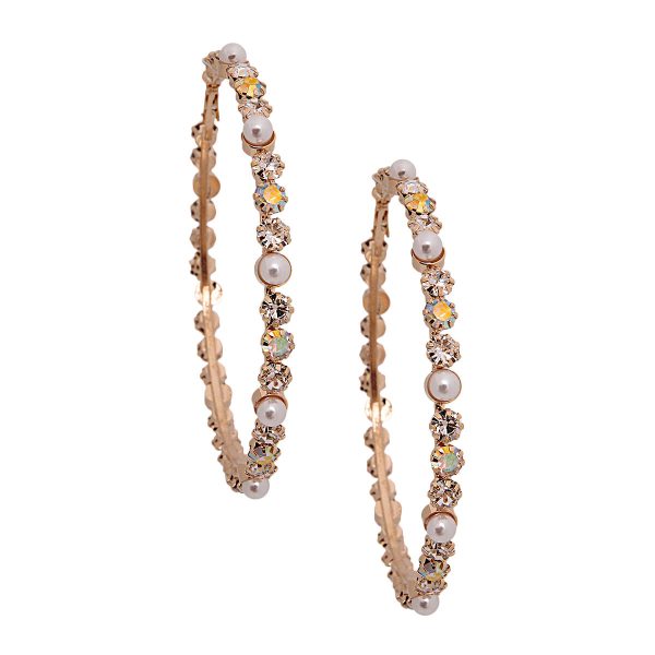 Gold Metal Cream Pearl and Clear Rhinestone Stud Mix Hoop Earrings