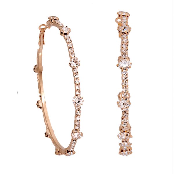 Gold Metal Round Clear Crystal and Pave Rhinestone Hoop Earrings