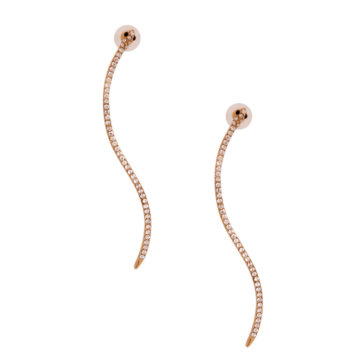 Gold Metal Thin Snake Earrings Featuring Clear Rhinestone Detailing