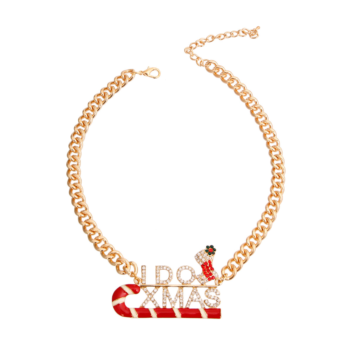 Gold Metal Chain Necklace Featuring Rhinestone I DO CHRISTMAS Pendant with Stocking and Candy Cane. Pendant measures 3 inches wide