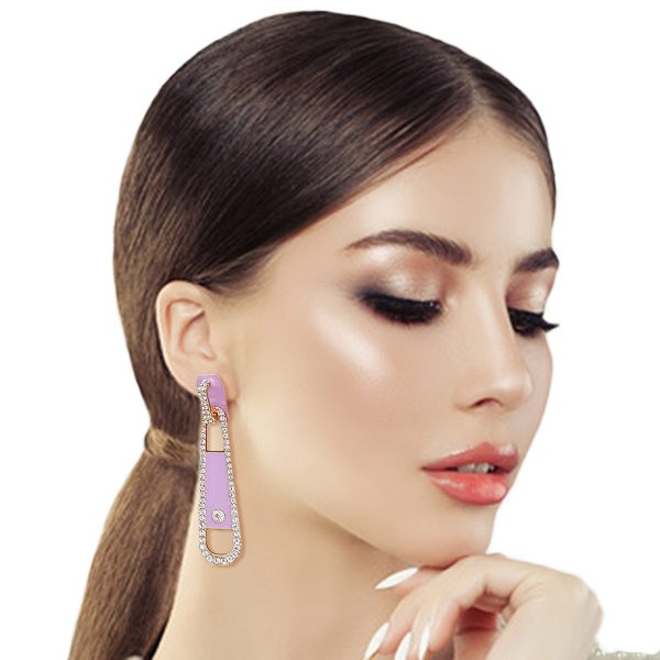 Gold Metal and Lavender Epoxy Zipper Drop Earrings Featuring Rhinestone Accents. Earrings measure .75 inches wide