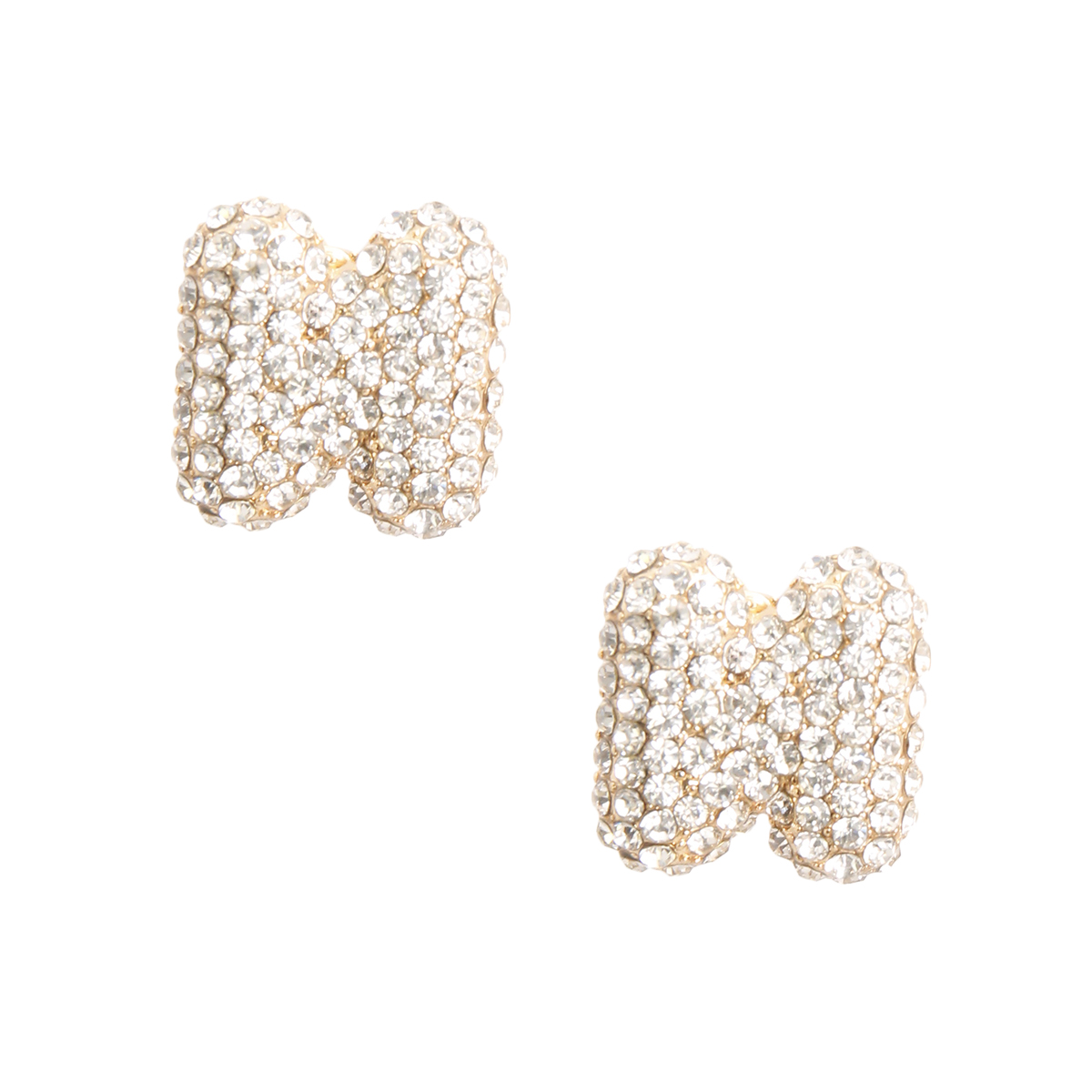 Gold Metal and Rhinestone Initial Letter N Stud Earrings