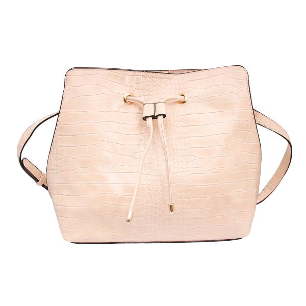Light Brown Stone Color Crocodile Vegan Leather Hobo Style Cinch Sack Handbag. Includes Matching Zipper Pouch. Adjustable Shoulder Strap