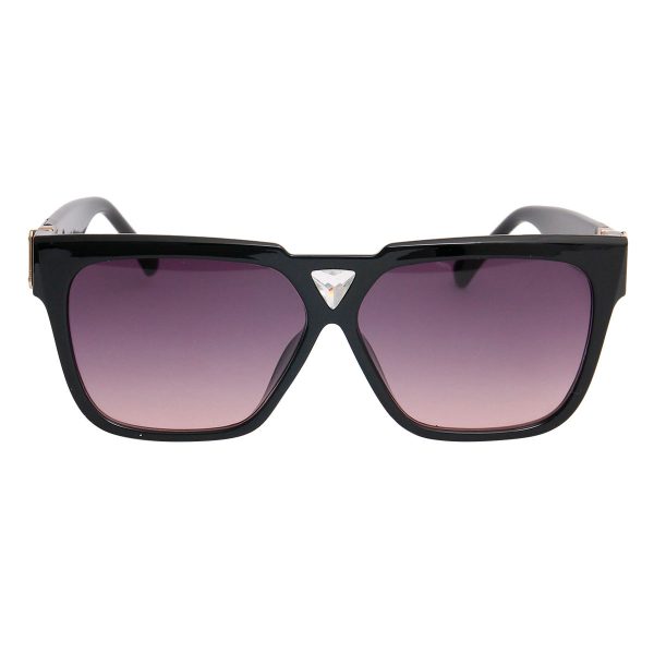 Louis Vuitton Style Black Plastic Wayfarer Style Sunglasses Featuring Trillion Cut Crystal and Pink Tint Lens Detail. Sunglasses measure 5.75 inches across and 2 inches long. UV 400 Protection. Blocks 100% UVA & UVB
