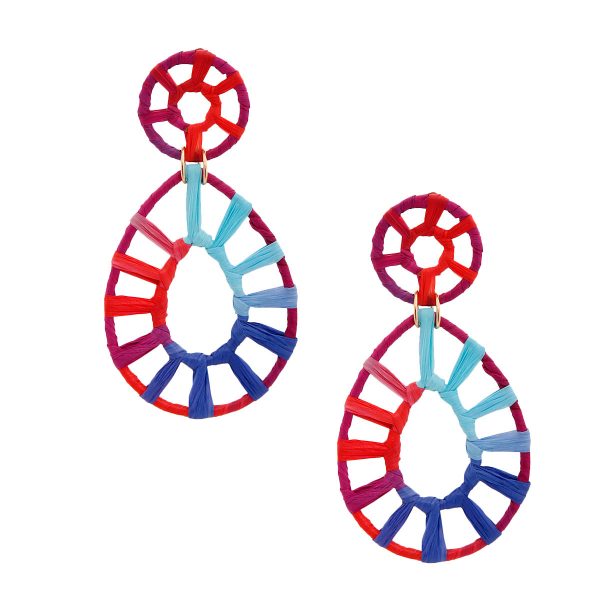 Multi Color Raffia Wrapped Teardrop Earrings. Earrings measure 1.75 inches wide