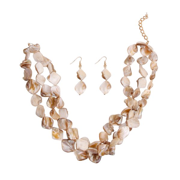 Gold and Metallic Natural Shaped Acrylic Bead 3 Strand Layered Necklace Set. Beads measure approx 1 inches each