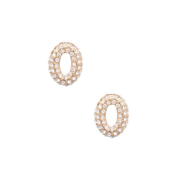 Gold Metal and Crystal Rhinestone Initial Letter O Stud Earrings