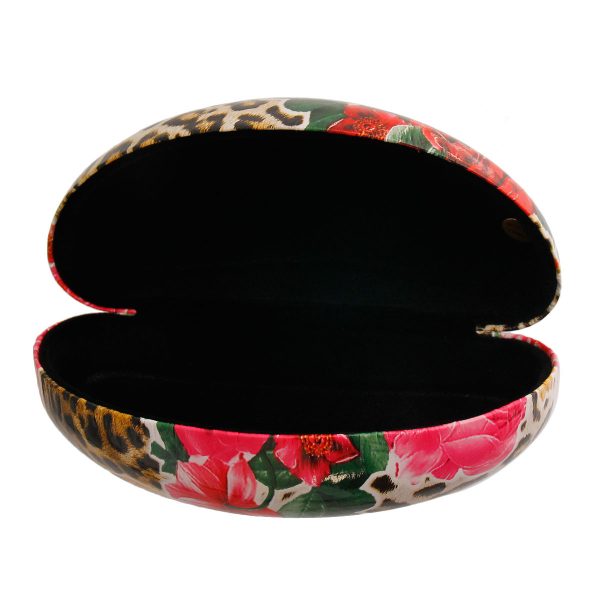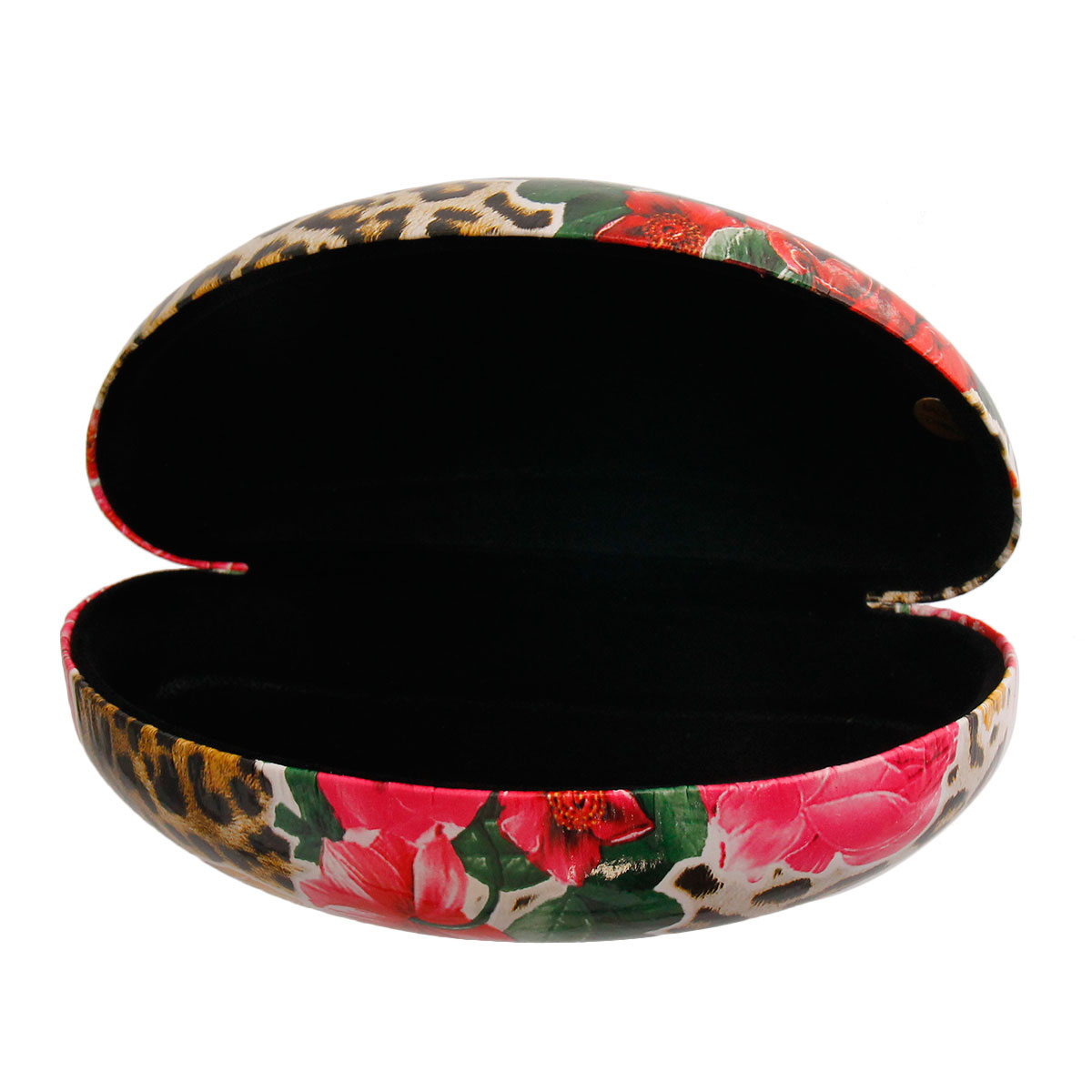 Pink Leopard and Flower Print Rounded Hard Sunglasses Case Featuring Black Crushed Velvet Interior and Hinge Closure