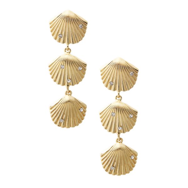 Gold Sea Shell Drop Earrings Featuring Rhinestone Detail
