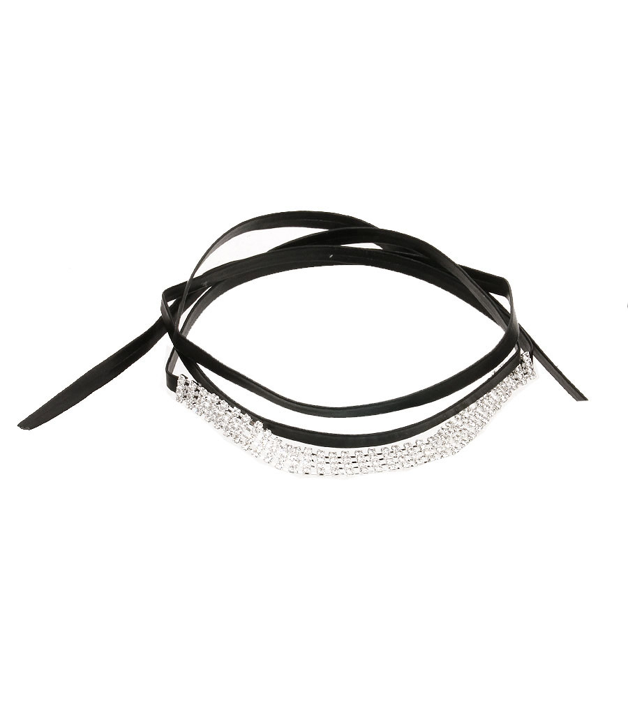 Black faux leather ribbon choker necklace with clear stones. Adjustable size
