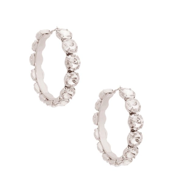 Silver Metal Hoop Earrings Featuring Chunky Clear Round Crystal Detailing