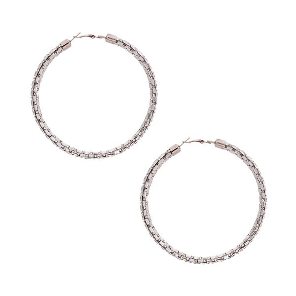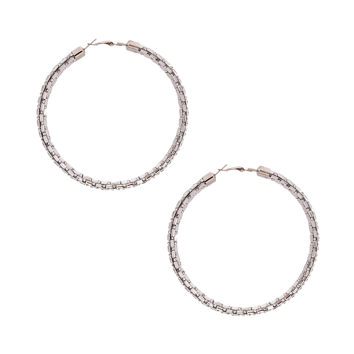 Silver Metal and Clear Crystal Rhinestone Tube Hoop Earrings