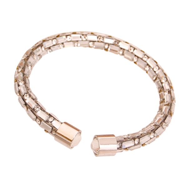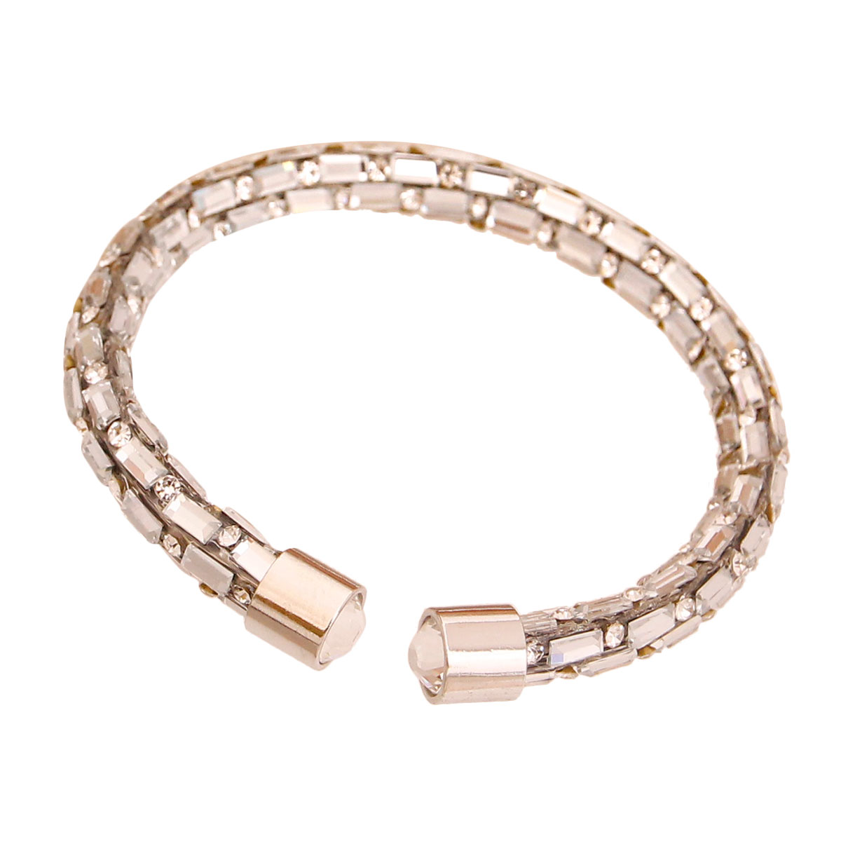 Silver Metal and Clear Crystal Rhinestone Tube Adjustable Bracelet