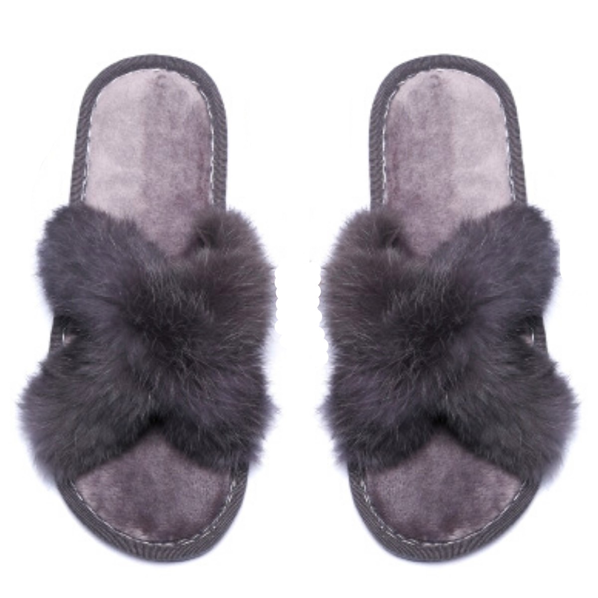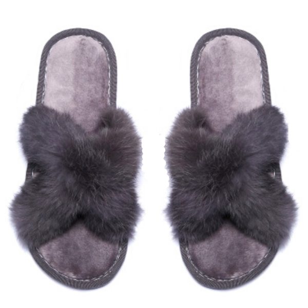 US Small Size 5-6 Gray Faux Fur Slipper Slides Featuring Gray Rubber Bottom. Measures 9.5 inches long