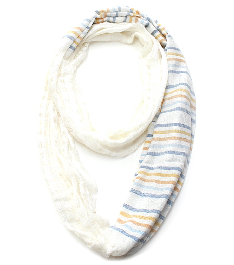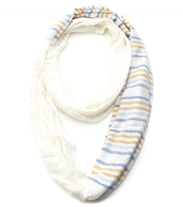Multi Color Crocheted and Striped Printed Infinity Scarf Made of 100% Viscose