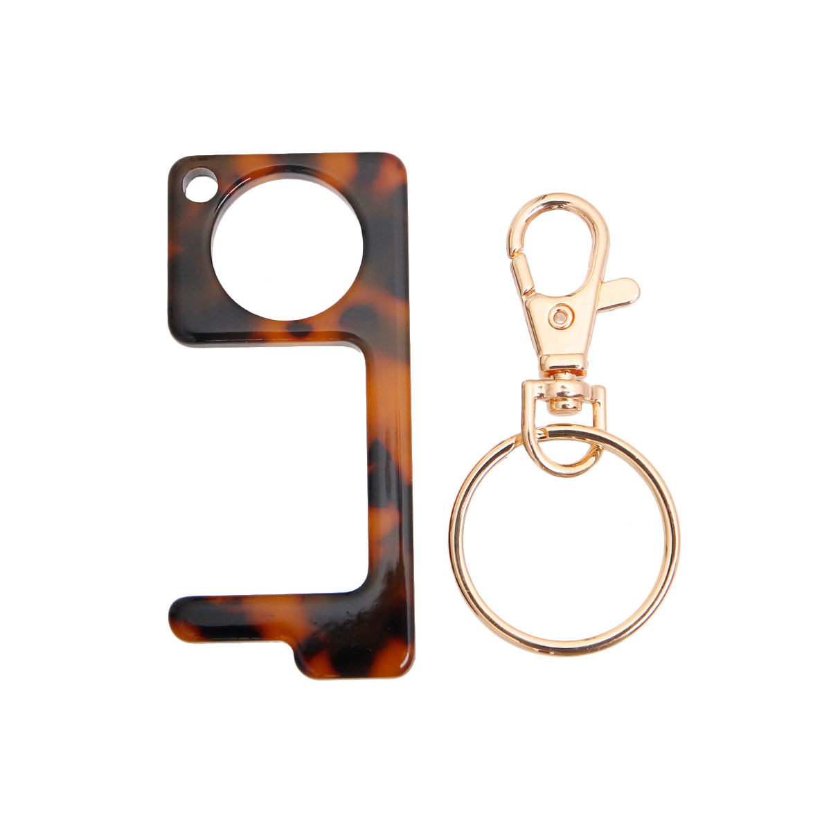 Tortoiseshell Pattern Acrylic Touchless Door Opener, Button Push, Germ-Free Tool Key Chain Ring. Easy to Disinfect