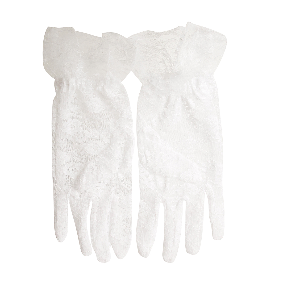 White Frilly Lace Pattern Gloves. Elastic Wrist